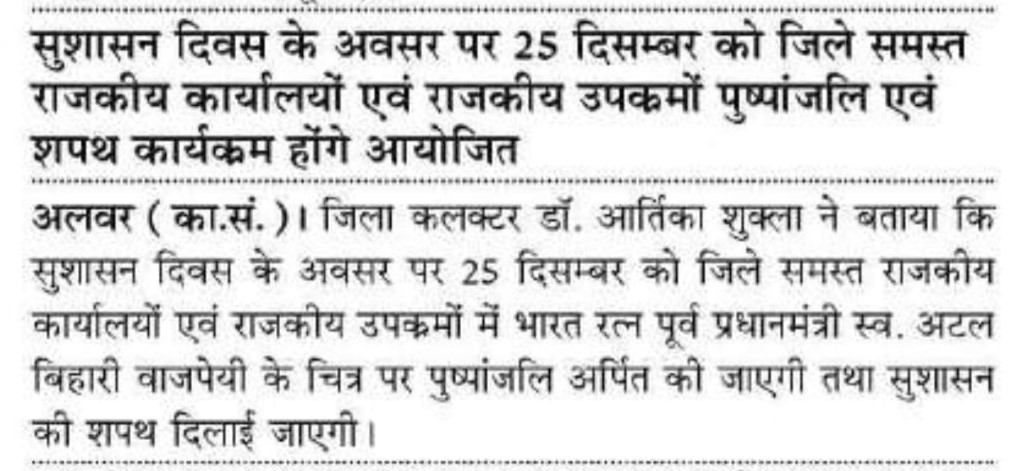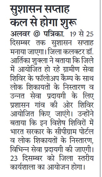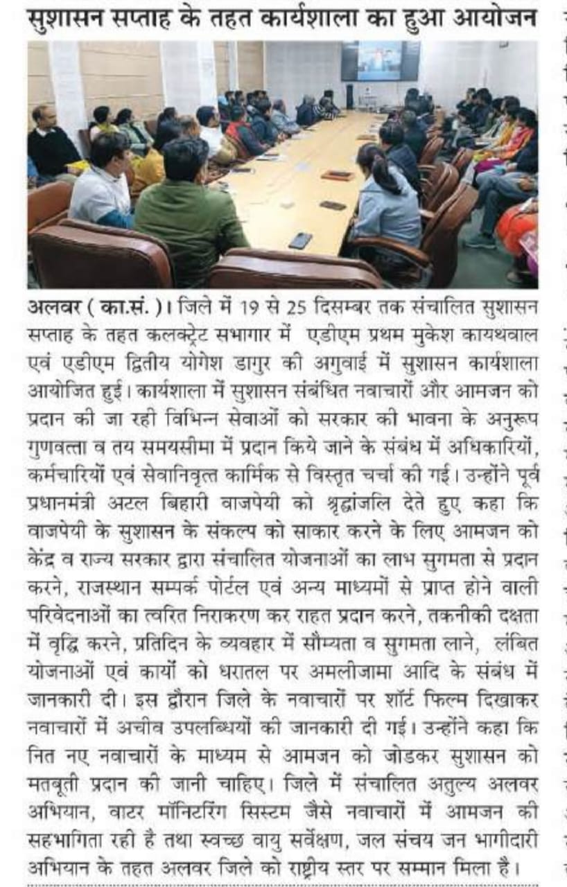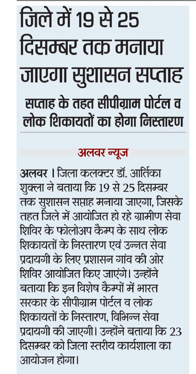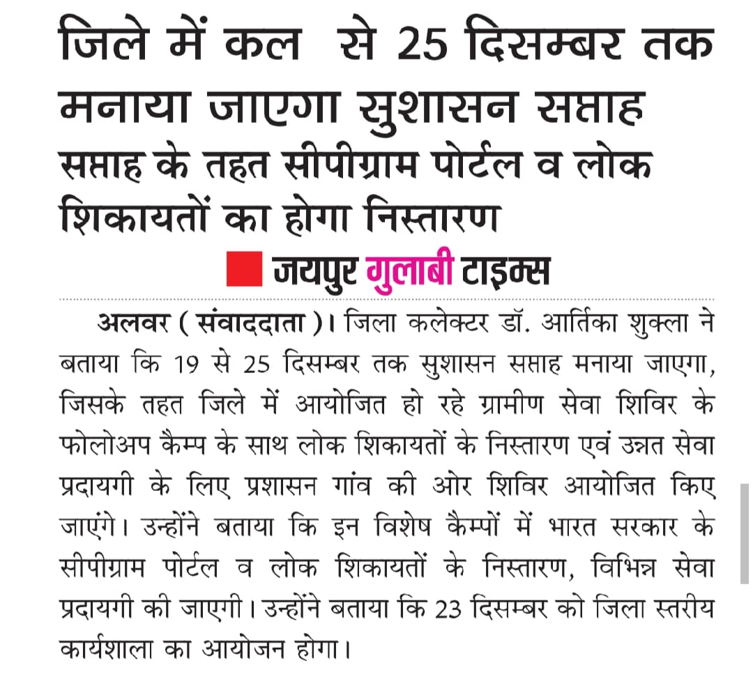 सुशासन सप्ताह 19 से 25 दिसम्बर-2025