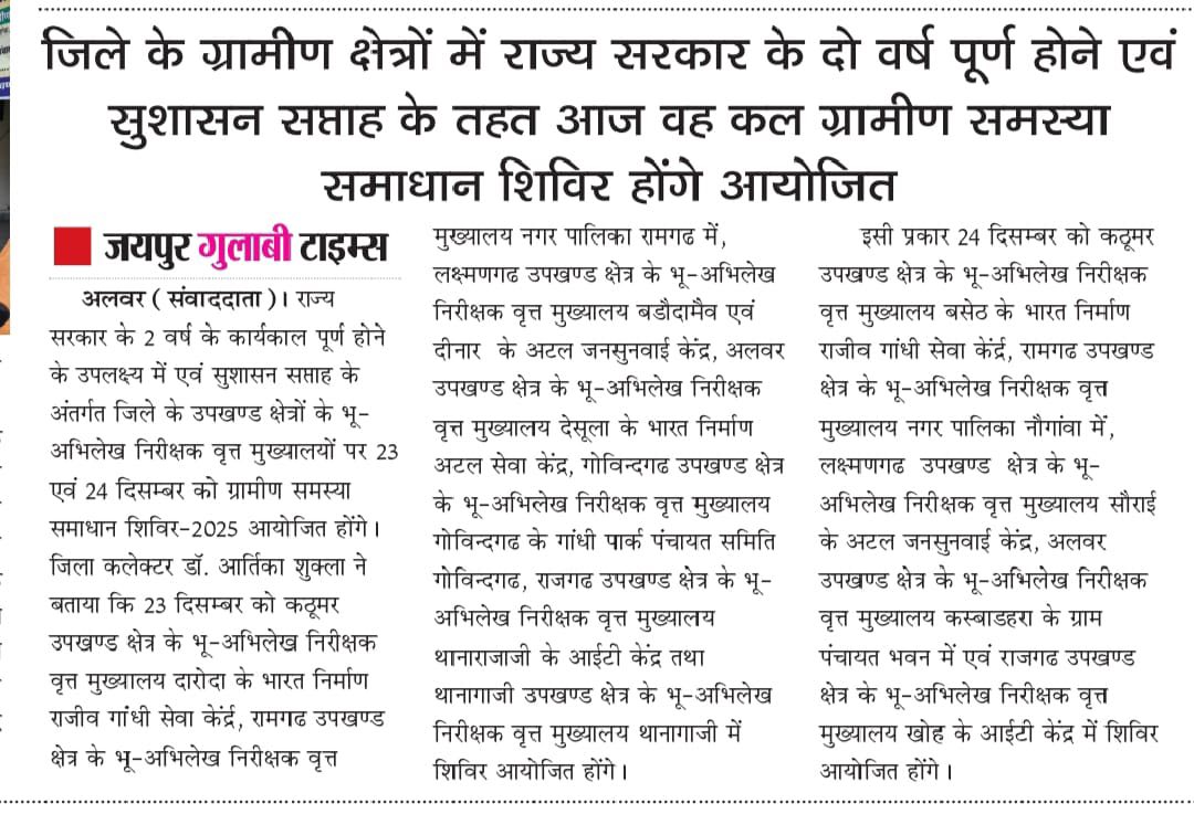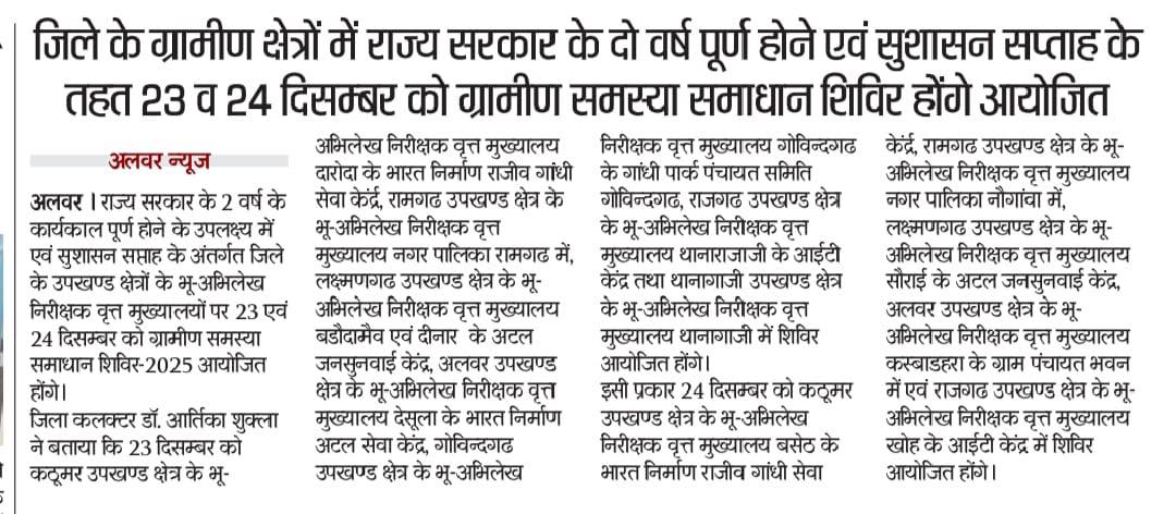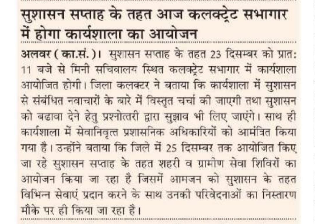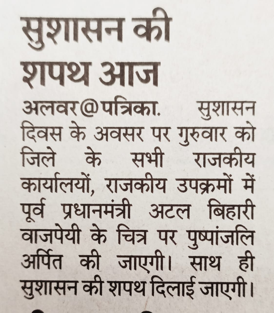 सुशासन सप्ताह 19 से 25 दिसम्बर-2025